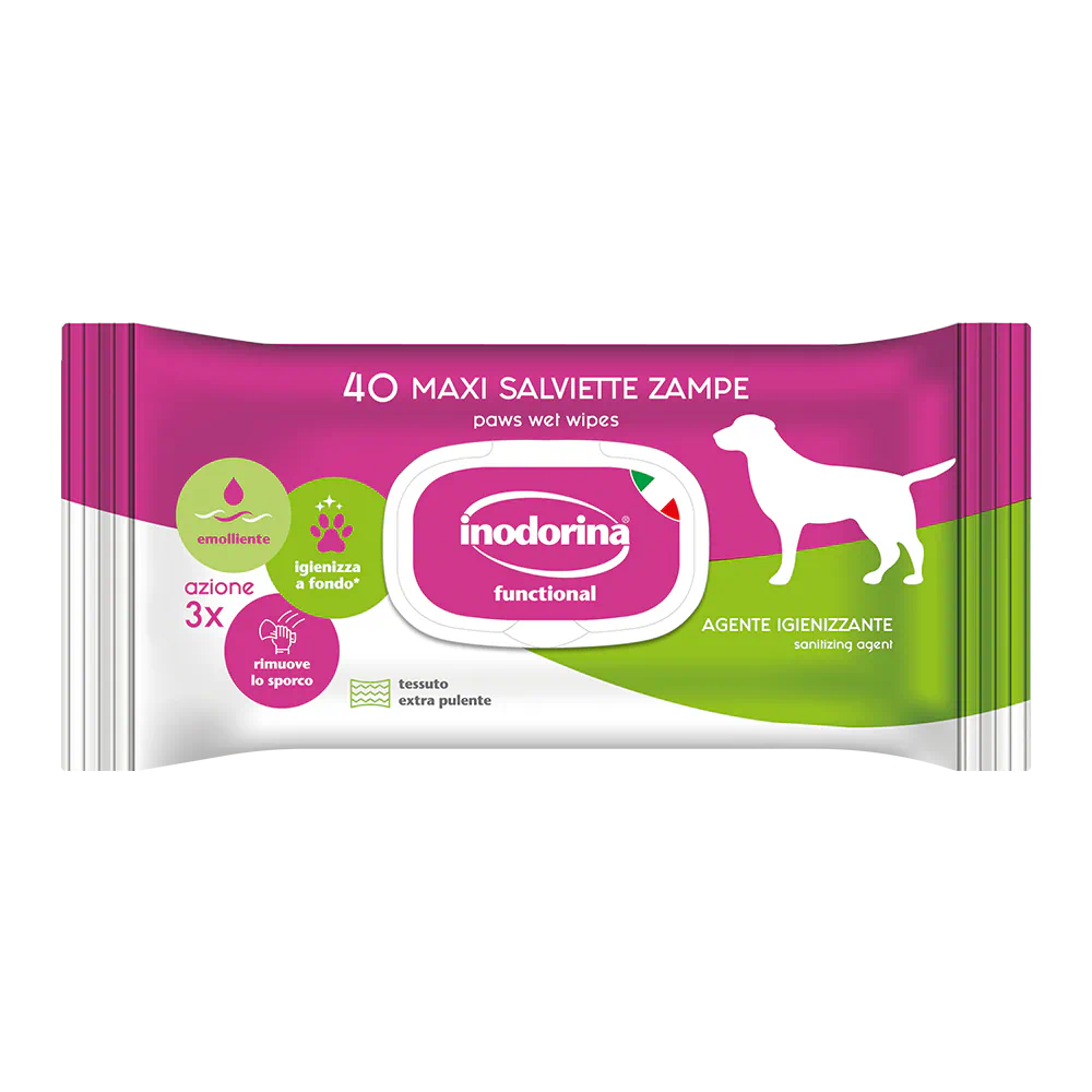 Le Salviette Functional per Zampe hanno una tripla azione: igienizzano a fondo, emolliano e rimuovono lo sporco. Hanno un tessuto extra pulente che contiene un agente igienizzate e sono per questo perfette per la pulizia delle zampe che sono più esposte ad agenti esterni e sporcizia.